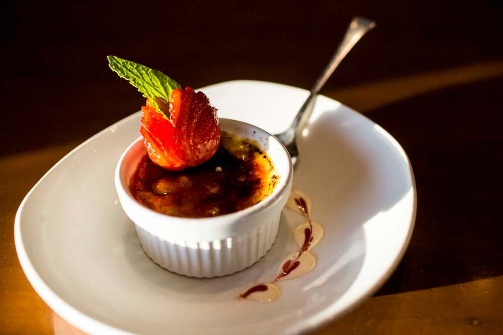 Desserts include a simple, nicely done vanilla crème brulée. Chocolate lava cake is tasty, in a sweet and gooey way, though the raspberry sauce is really just red drizzle and the whipped cream is more air than cream.