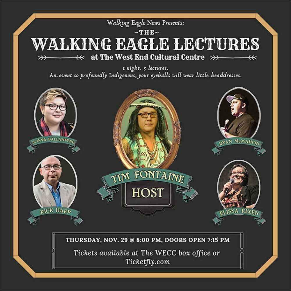 In celebration of the site’s first anniversary, Fontaine is taking his gallows humour to the stage. On Thursday, the West End Cultural Centre will host The Walking Eagle Lectures, which Fontaine describes as a cross between standup comedy and a TED Talk. He’ll be joined by comedians Ryan McMahon and Elissa Kixen, podcaster Rick Harp and filmmaker Sonya Ballantyne.