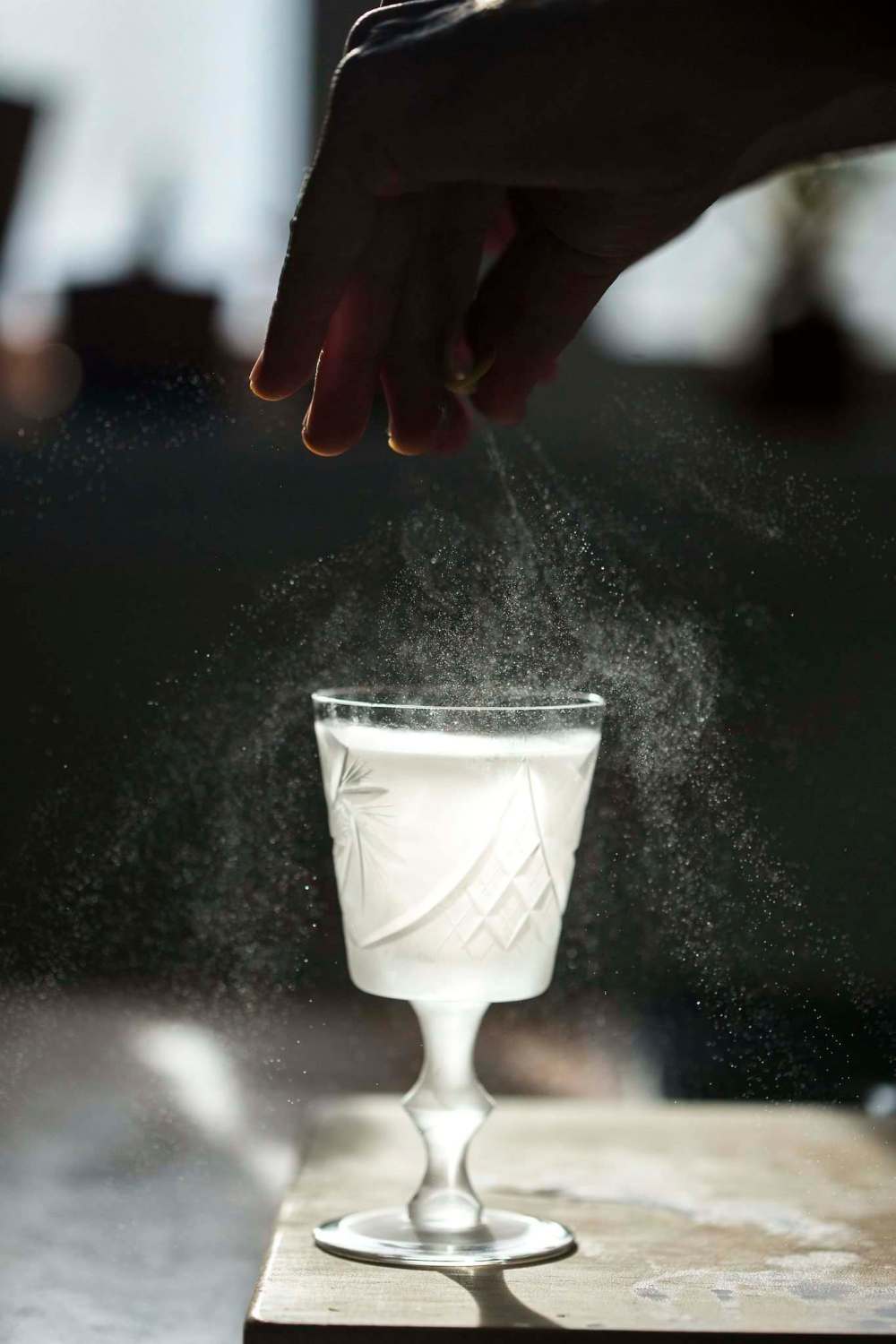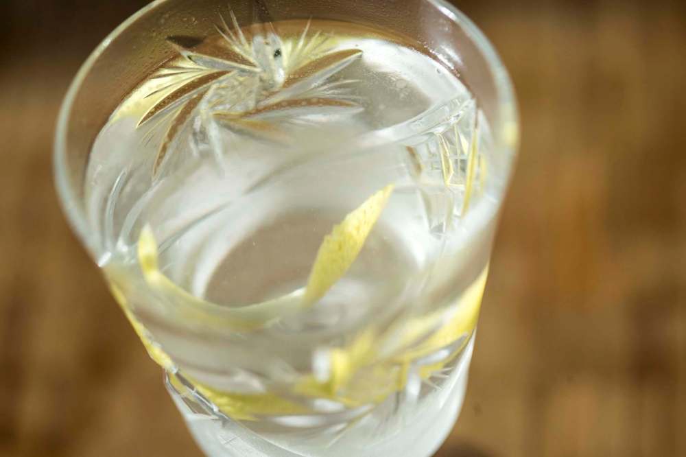 Krahn prefers Plymouth gin for its smooth quality, and its juniper and flowery notes; he also uses a drop of saline solution and a garnish of lemon peel (though you can chose to garnish with olives or a pickled onion, if you prefer). And 007 be damned: he stirs (rather than shakes) the mixture “vigorously for 20 seconds, so it gets ice, ice, ice, ice-cold and properly diluted.” He finds stirring gives the drink a more velvety mouthfeel, without ice chips.