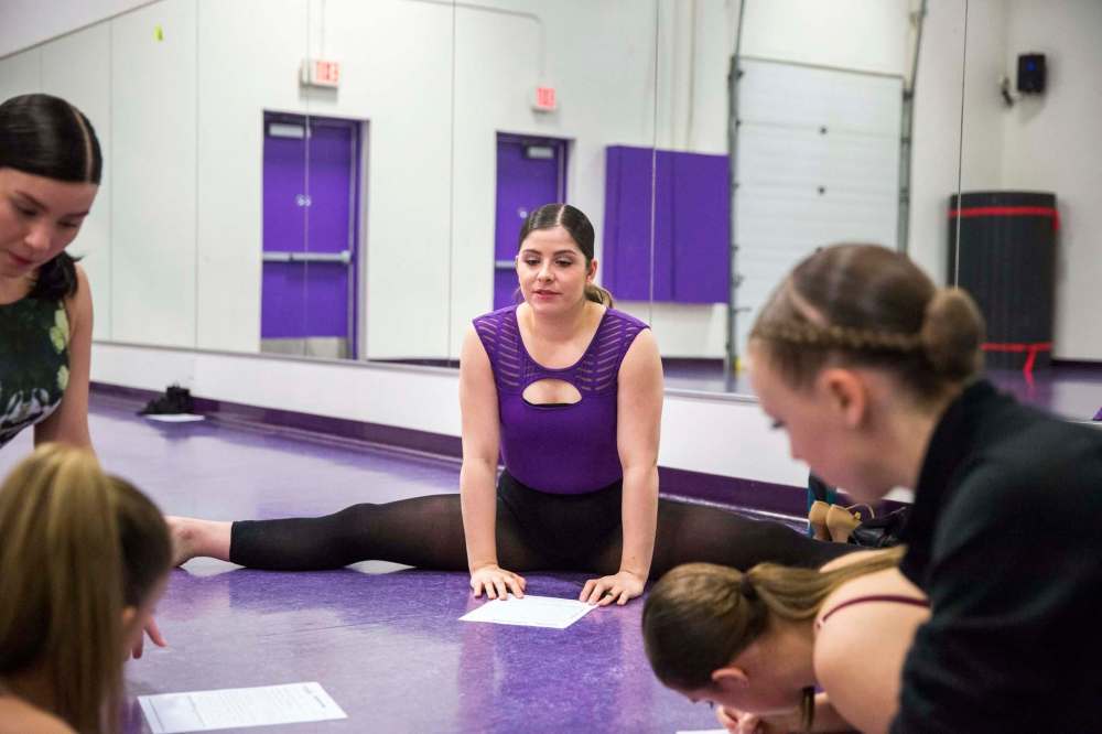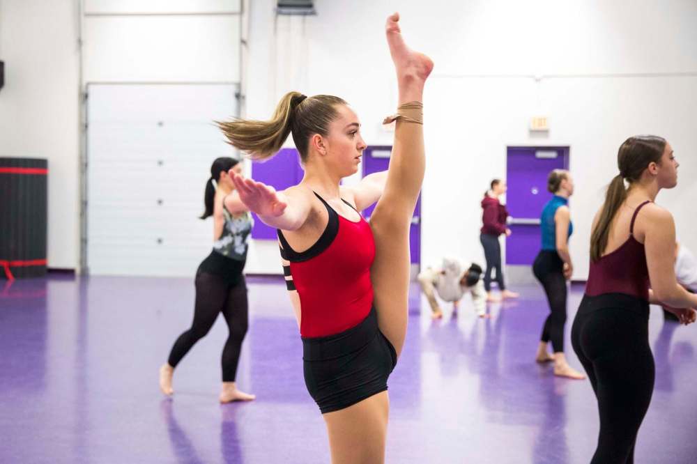 Haley Myers warms up for auditions.