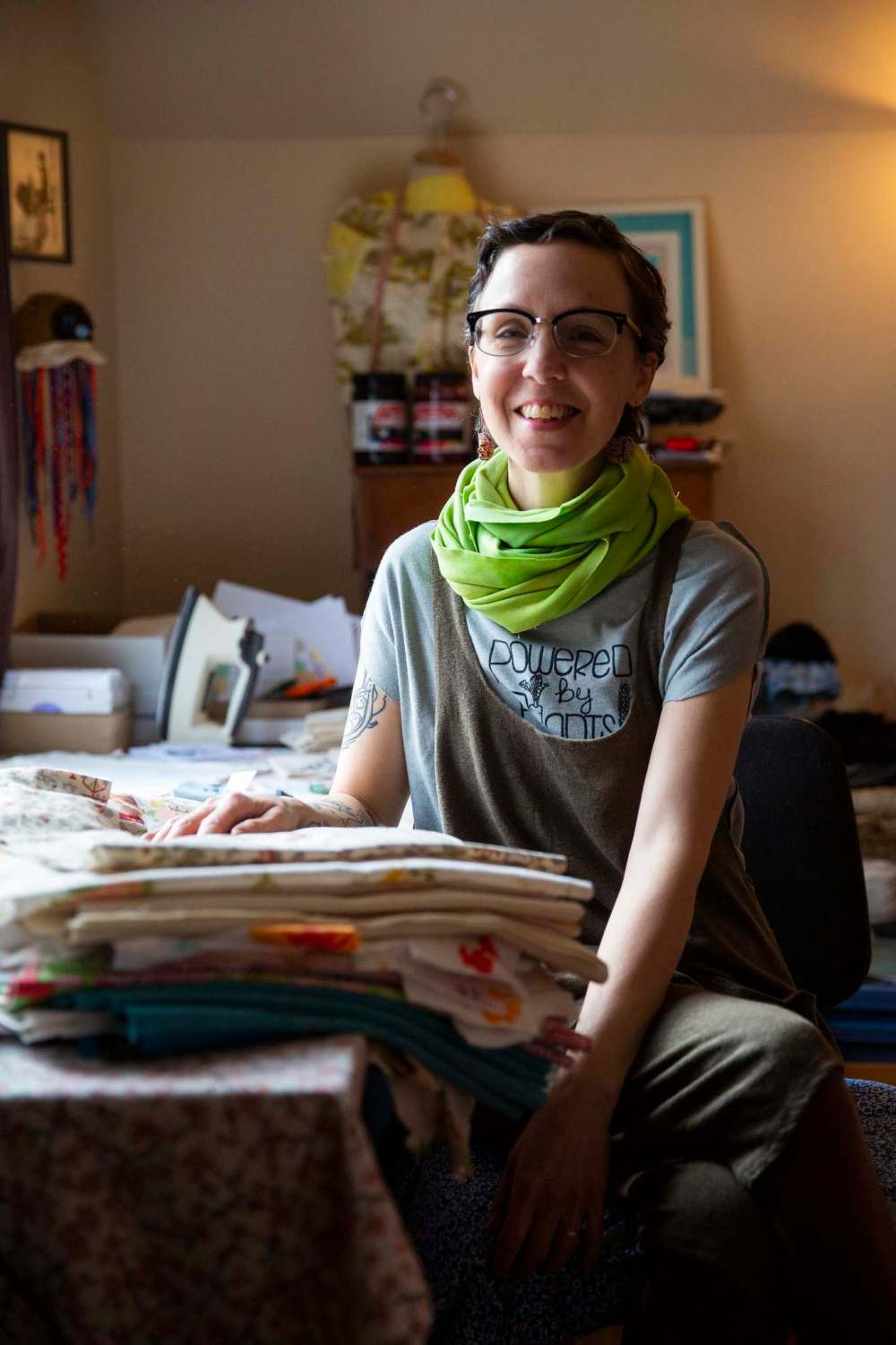 “It’s hard to want to educate without preaching,” she says, noting if you’re ever walking out of a grocery store with your arms full because you refused the offer of a plastic bag, she’ll be the one high-fiving you in the parking lot. “For that reason, at my last market I put out a tray of reusable cloth tote bags, all made with thrift store fabric, with a sign on it that said ‘pay what you can.’ The last thing I want to do is have people not make these habit changes because it’s unaffordable. If you’re ready to make that change — to forgo plastic bags, etc. — I’m willing to help you facilitate that as much as I can. That’s what Sew Dandee is primarily about, now.”