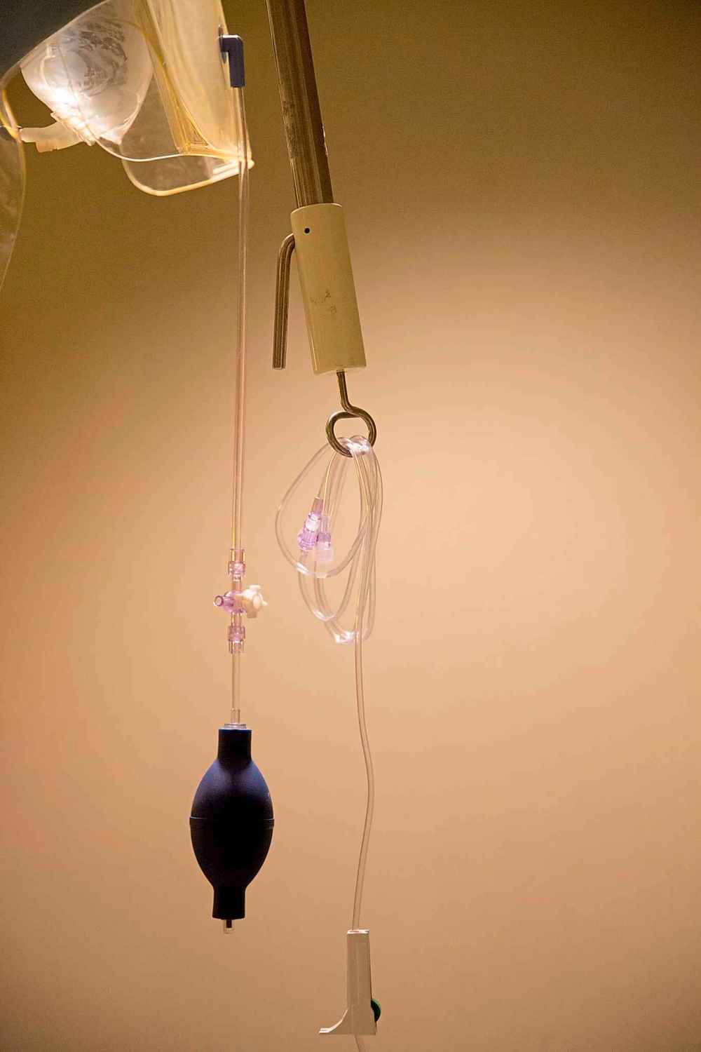 First, an IV is started and blood is drawn.