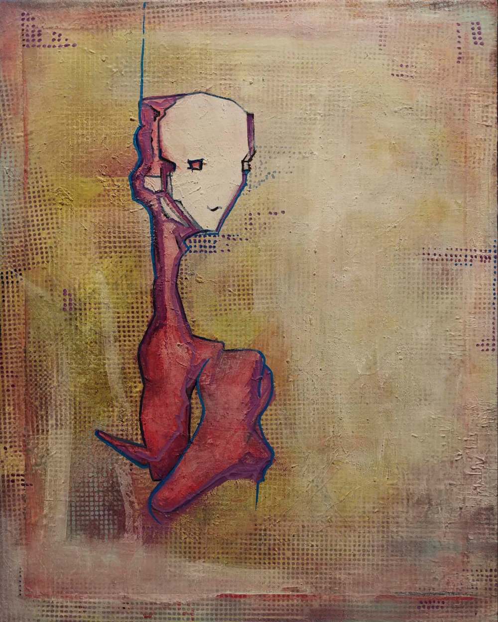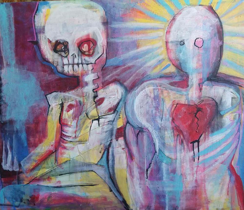 “(Living with mental illnesses) has really influenced my work through colour selection, subject matter and the application of the paint,” he says. “I once did a series of paintings of purple homeless people… being homeless is a big fear of mine.”