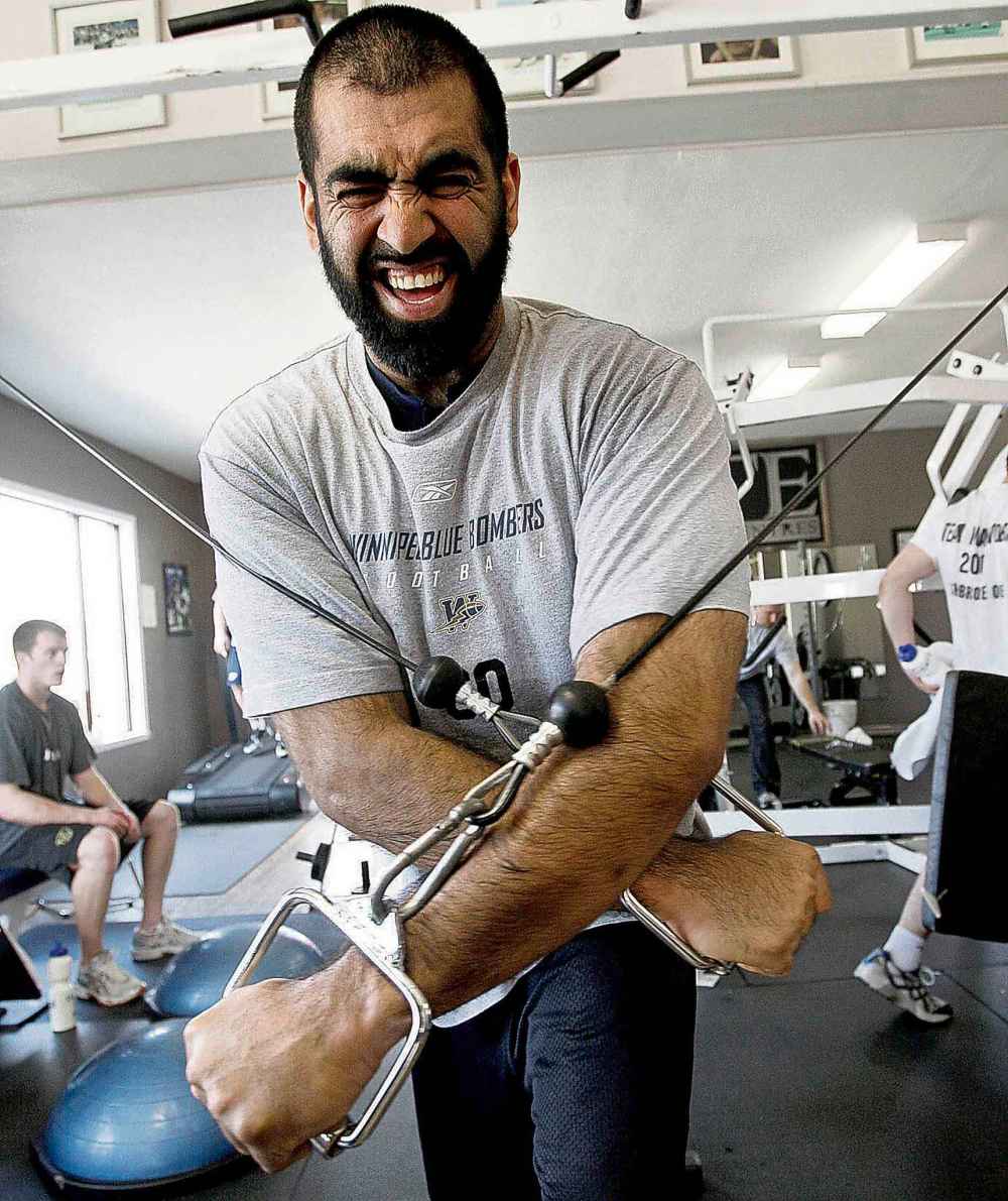 Khan’s career blossomed after he joined the Blue Bombers. As the club’s starting centre, he was nominated for the CFL’s most outstanding offensive lineman award in 2006.
