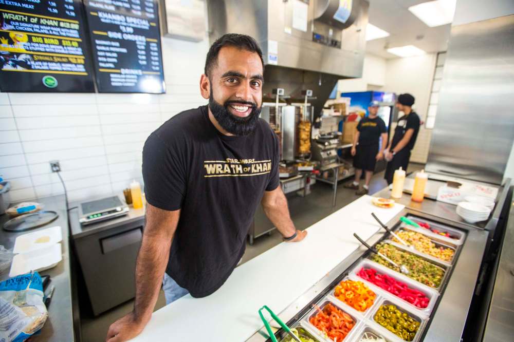 Quite often, customers at the stadium seem surprised by how hands-on Khan is. Or that he’s even wearing an apron in the first place, inquiring whether they want pickled turnips and banana peppers in their wrap. (Uh, peppers, yes, turnips, no.)