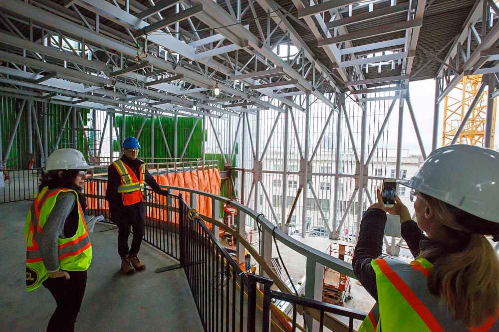 It is Saturday afternoon at the site of the Winnipeg Art Gallery’s new Inuit Art Centre, the gleaming new facility rising at the corner of Memorial Boulevard and St. Mary Avenue. The construction that buzzes most days is quiet for the time being, so as to allow three tours of the site for a small group of WAG donors and journalists.