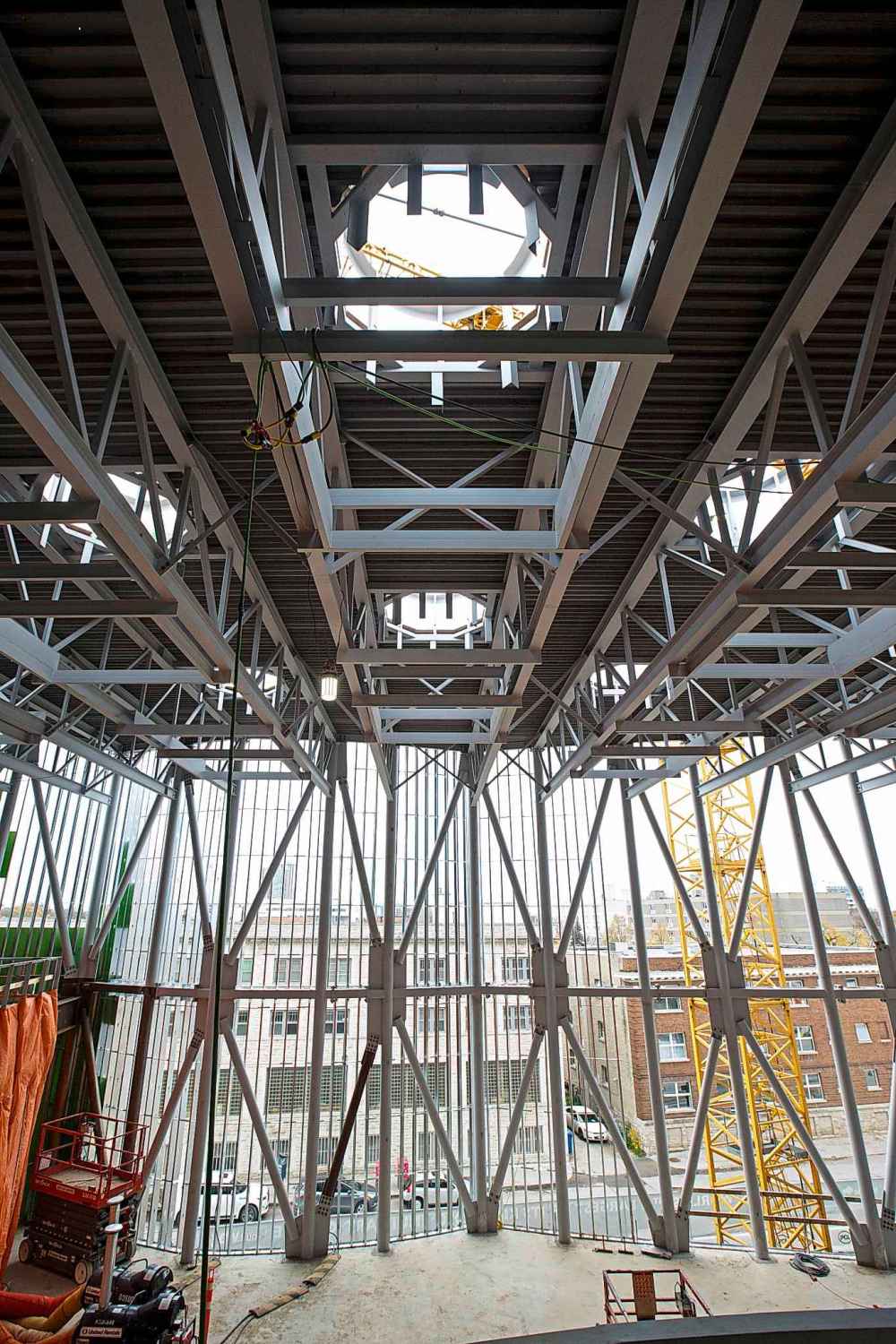 In the end, what he took from the North was a story about vastness, and now, he can point out how it speaks through the rising construction. When a visitor comes in, they are greeted by the visible vault, and then by a path of stairs and mezzanine that wraps around and rises to the floors above, flowing from one place to another.