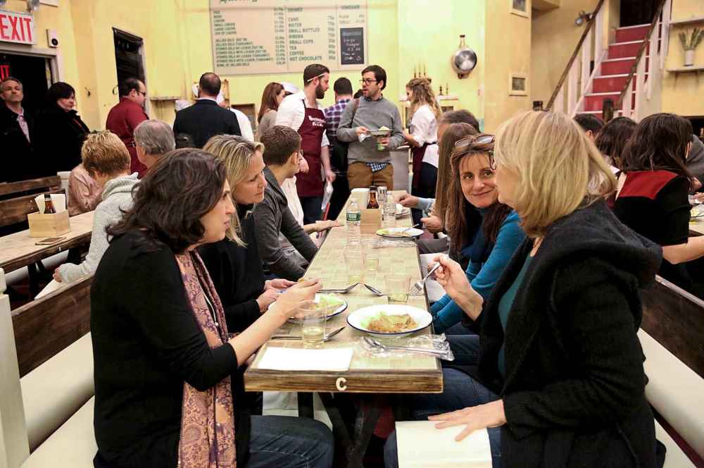 The 2019 Broadway revival of Rodgers and Hammerstein’s Oklahoma! features cornbread and chili at intermission, while 2018’s Waitress serves the audience fresh pie. Even off-Broadway has dabbled in the idea: 2017’s Sweeney Todd retooled the Barrow Street Theatre into functioning meat-pie shop and the 2012 Ars Nova and 2013 Kazino production of Natasha, Pierre and the Great Comet of 1812 featured a full menu and staging directly inspired by the dinner-theatre style.