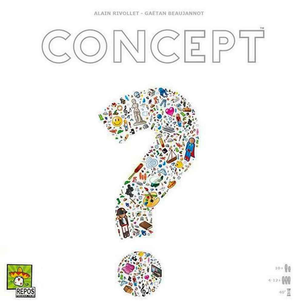 Concept is addictive but has an extremely simple set of rules. Players are presented with a large game board that is filled with different icons. The goal is to guess words through the association of icons. Players choose a word or phrase from a card, which the other players will be required to guess. They give clues by placing pieces judiciously on the available icons on the game board. The combination of the chosen icons should represent the word. (i.e. Animal+Flying+Small+Yellow+Black = Bee!)