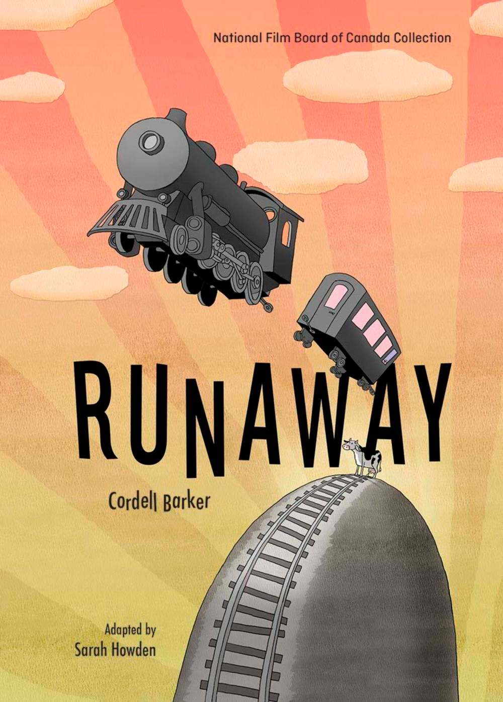 In this adaptation of a National Film Board movie by local animator Cordell Barker, disaster threatens when a cow wanders onto the tracks while the engineer is busy flirting with a passenger. Barker’s hilarious illustrations describe the train’s headlong passage as it hurtles out of control while the fireman vainly tries to help. The passengers are bribed to contribute their clothes for fuel, but the cow gets the last word.