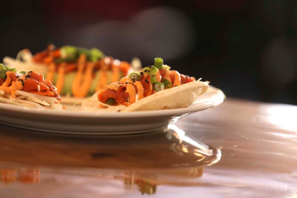 The porchetta press could have been porkier and juicier — and it has none of those crisp crackling bits — but all the fixings (chimichurri, roasted red pepper and some stretchy provolone and mozzarella) are good. Fish tacos start with small flour tortillas and pack a lot of flavour, pairing smoked salmon with some crunchy veg, spicy mayo and maple ponzu. The chicken tacos (also available with mushroom for a vegetarian option) include refried black beans and a creamy avocado basil sauce. You can also request corn tortillas for a gluten-friendly option.