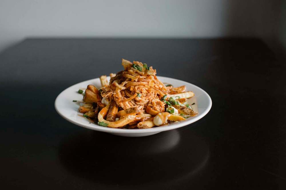Pulled pork slow-cooked in Winnipeg’s Stone Angel Brewery’s Onkel Georg red ale winter radler, mixed with a Crown Royal barbecue sauce over hand-cut fries topped with cheese curds, gravy and spicy crispy fried onions and an Onkel Georg reduction.