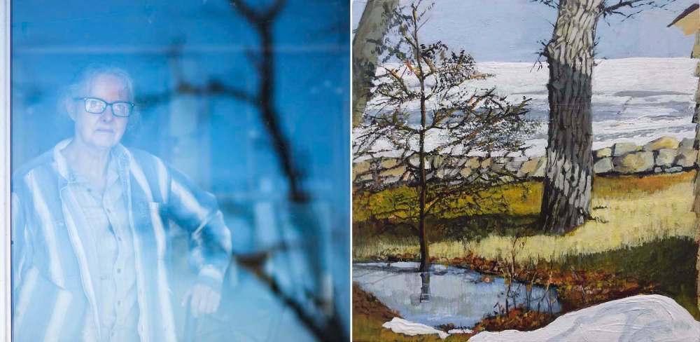Sandy Hook-based painter Ainslie Davis (above) in the back doorway of her home (where she paints in the winter with a view of the lake) on March 29.