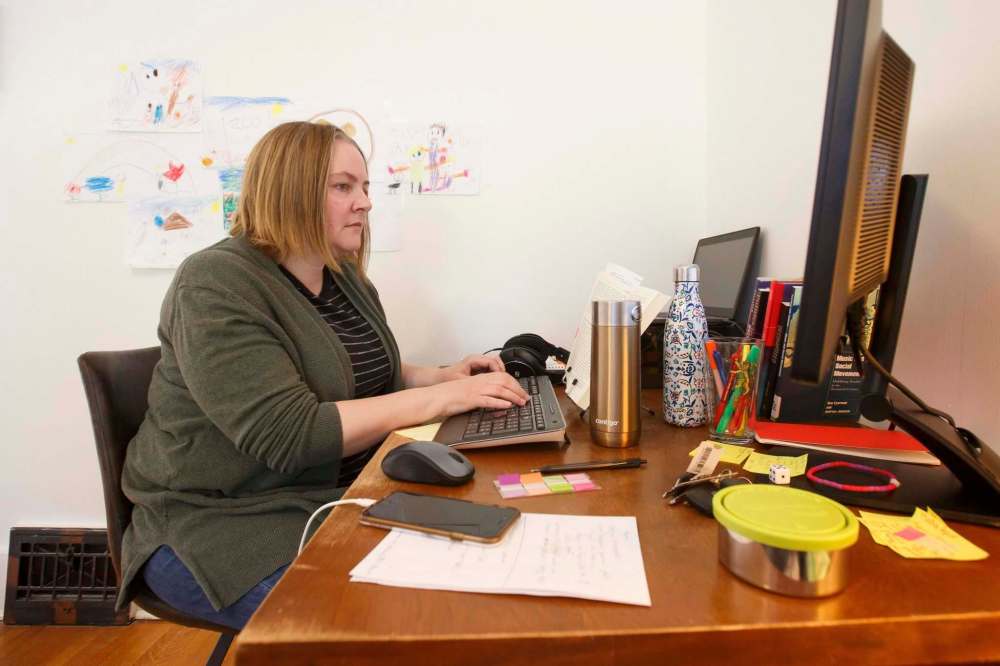 Owing to the pandemic, however, the 35-year-old research assistant is now doing her job from much smaller digs: the corner of her bedroom in her West End home. Conway can touch her bed from her desk. Her current officemates? Two young kids.