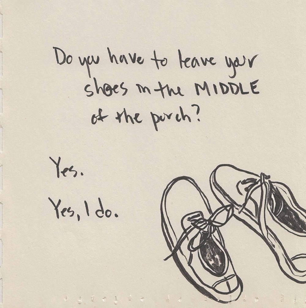 “We didn’t want to be pushing one notebook that we both touched a lot back and forth,” says Gordon. “So we put together two boxes of paper and every few weeks we’d switch, so she would draw on the things I had written on and I would write on the things she had drawn on.”