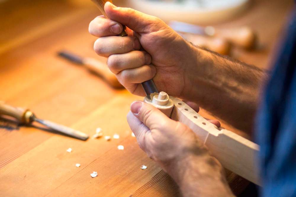 Lee graduated from the program with distinction — and the highest honours awarded in more than five years — subsequently launching into a partnership with his instructor Susanna (Sillberg) Collins and Seisuke Kawamura. He returned home to Canada in 2008 to set up his own shop, which he now shares with his former apprentice Matthew Harder, who specializes in string repairs and maintenance for the local community.