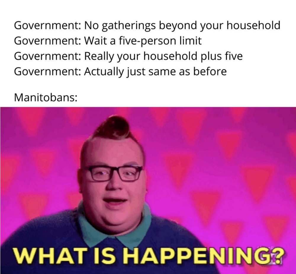 Another Instagram account that takes this to heart is @#mbpolidragrace, which uses content from the highly meme-able reality show RuPaul’s Drag Race to satirize Manitoba’s pandemic response. In a little over two weeks, the account has grown to nearly 3,000 followers.