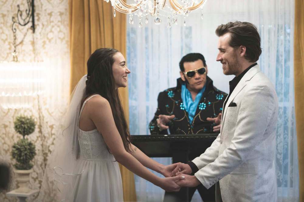 “We were initially going to the courthouse but we decided to surprise them with an Elvis Chapel and our cat Winnie as the cat-in-honour. It was taking a really dark situation and turning into something happy and positive that family and friends and fans and everybody could cry happy tears and laugh about down the road, instead of waiting out COVID or going to the courthouse.”