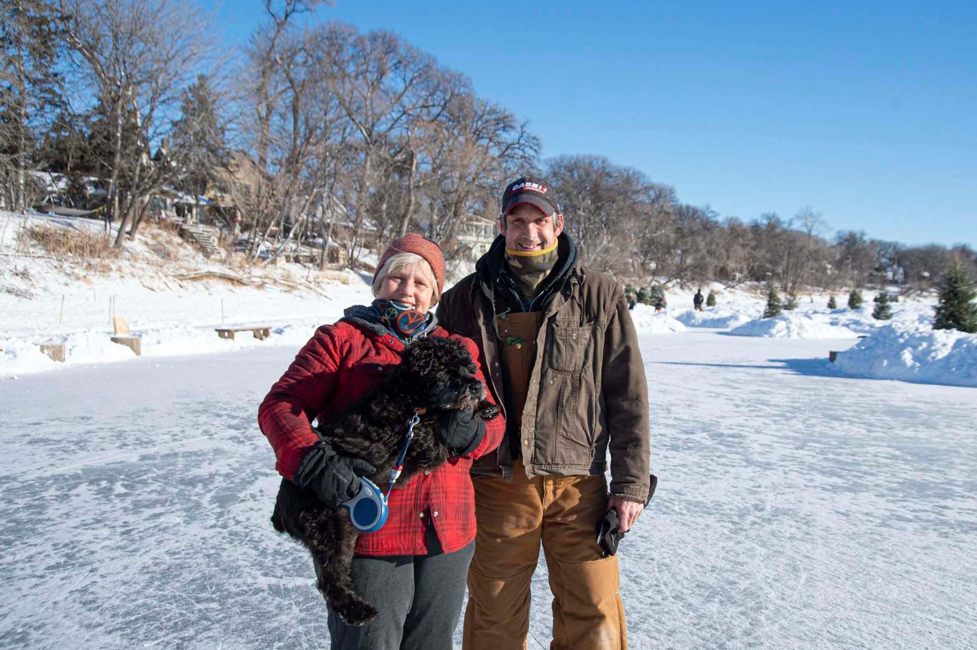 Neighbours map out intricate skate paths, an aerial view revealing an archipelago of small islets along the way. Innovations — such as Dean’s Dozer (built by Dean McLeod, a teacher and former outdoor educator, it turns out), homemade Zamboni and water pumps — are put together in garages and sheds. Dorbolo and Dyck’s son Devin shovelled tonnes of snow to build a giant toboggan slide off their backyard and onto the river.