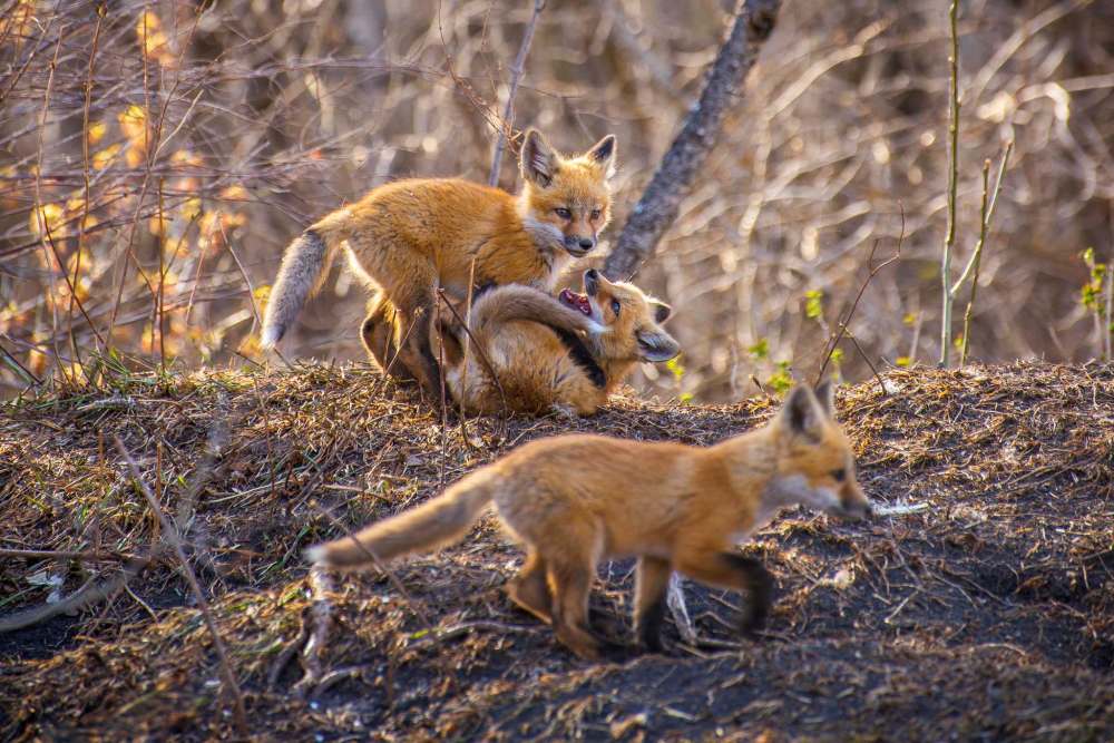 He witnessed a lot of interesting fox behaviour while watching the eight pups grow into their own. During wood-tick season, there was some nervous hand-wringing when he noticed the pups were covered in the blood-sucking insects.