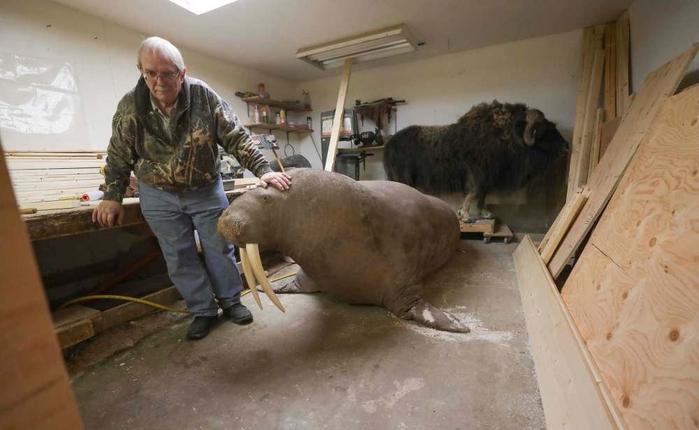 To most, the sight — a walrus plunked on the concrete floor like an arctic bean-bag chair, the muskox parked in the corner like a sedan in a garage — is mystifying and somewhat unbelievable. To Baxter, the owner of Telesky Taxidermist Ltd. and a taxidermist since the age of 17, it’s routine: preserving dead animals is his life’s work.