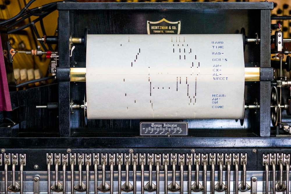 Player pianos essentially come in two “flavours”: newer electric instruments, or traditional “pumpers,” in which a player manually paddles air with their feet via pedals, in turn pneumatically rotating the song roll to magically depress the piano keys. Perforated holes punched into the paper rolls typically “tell” the piano which notes to play via a coding system, as well as when, for how long, and at what dynamic level. It’s an astonishing feat of engineering that makes many modern-day inventions look like child’s play.