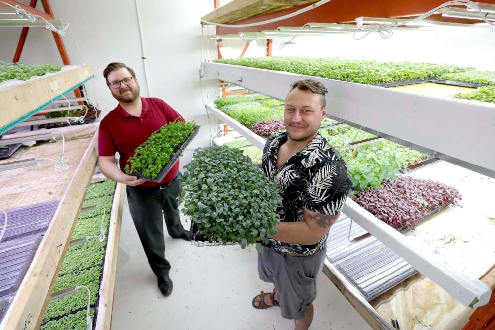 This month, the company launched a salad subscription program that will see Winnipeggers getting greens and dressing delivered to their door once a week. The salads include a base of sunflower and pea shoots and a rotating blend of garnish mixes made from micro arugula, radish shoots, brassicas and mustard greens. They’ve also partnered with local catering company Loaf and Honey to create specialty salad dressings.