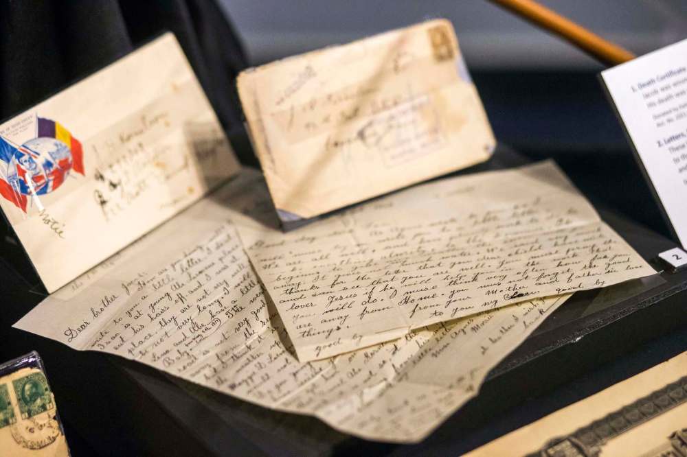 One collection of letters and documents from the family of Jacob Harms Cornelson (also spelled Kornelsen) of Rosenort, who enlisted in the Canadian army in 1916, was offered to the museum weeks after the exhibit was completed, said Klassen. Since the museum was closed until mid-July under public health orders, there was time to add the young soldier’s death certificate and letters Cornelsen’s sisters wrote to him, returned to the family after his death at Vimy Ridge on May 4, 1917.