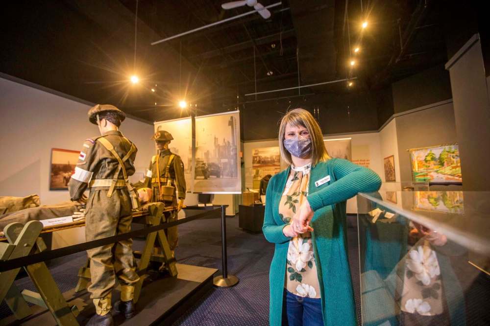 That number does not include women such as Susan Janzen Ciske, who served in the United States army nurse corps after working in hospitals in Altona and Detroit. In addition to her identification tags, passport and photo, a wooden music box with the name “Jan” inlaid on top is on display, built by a Czech prisoner of war Janzen befriended. Jan was Ciske’s nickname, based on the first syllable of her family name.