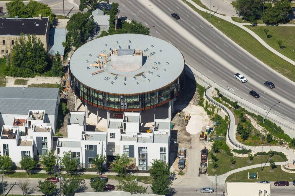 Designed by 5468796 Architecture, a Winnipeg firm that has gained national and international attention and awards since its founding in 2007, 62M’s shape is a considered response to its unprepossessing site.
