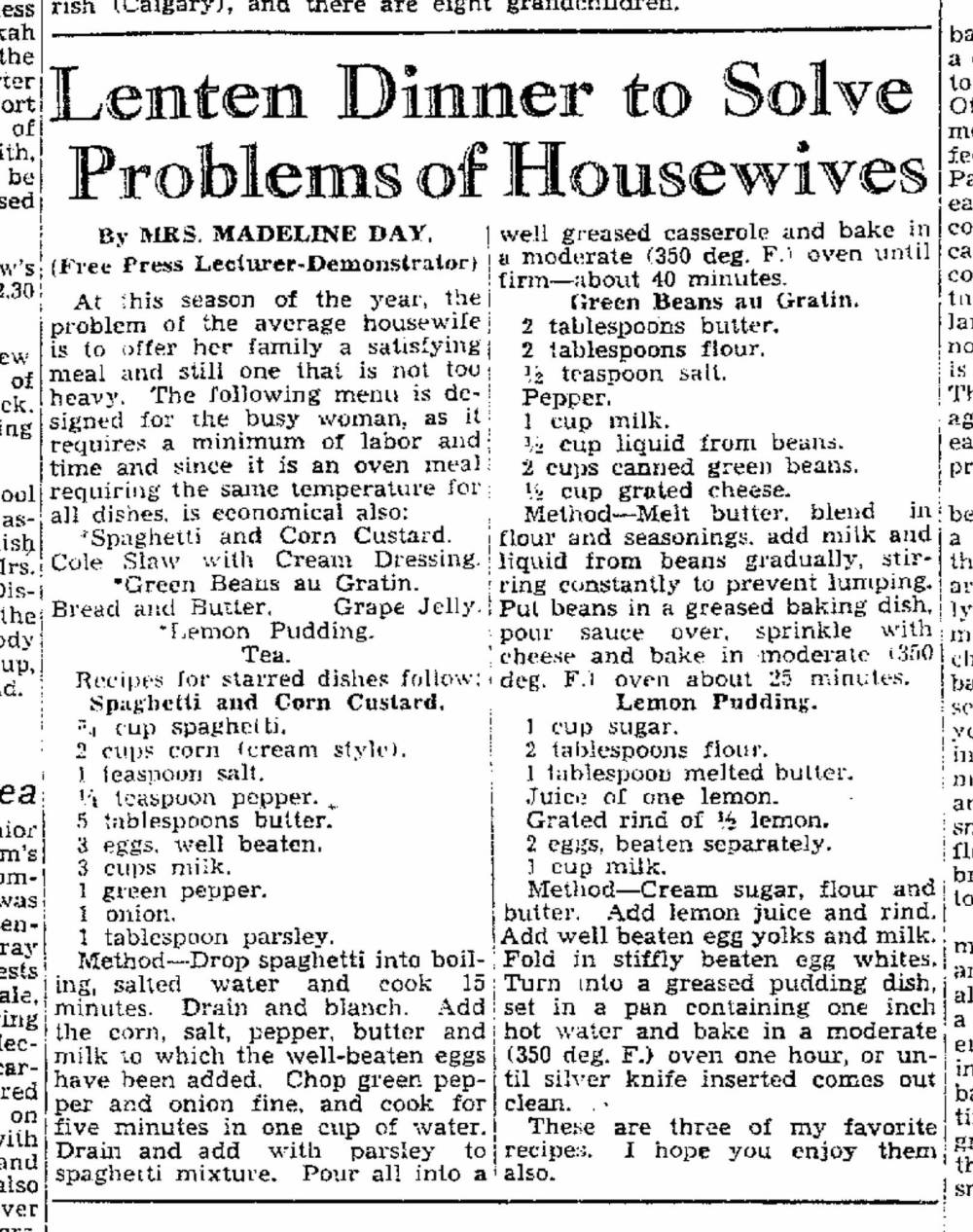 Domestic diva In the 1930s, Free Press readers turned to Mrs. Madeline Day to help them get dinner on the (perfectly set) table