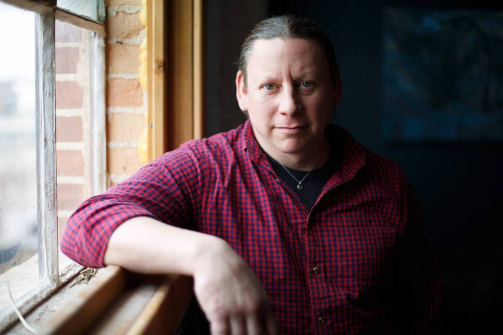 No, he’s fixing a window in the boardroom at Vincent Design Inc., which is located on the third floor of the Social Enterprise Centre, a collaborative workspace in a renovated warehouse in Winnipeg’s North End. It’s one of the first nice days of spring, and he wants to let in some fresh air. The blue sky is framed out behind him and, when the window finally relents, it’s like an exhale. The warm breeze rushes in, carrying the rumble and screech of passing trains.