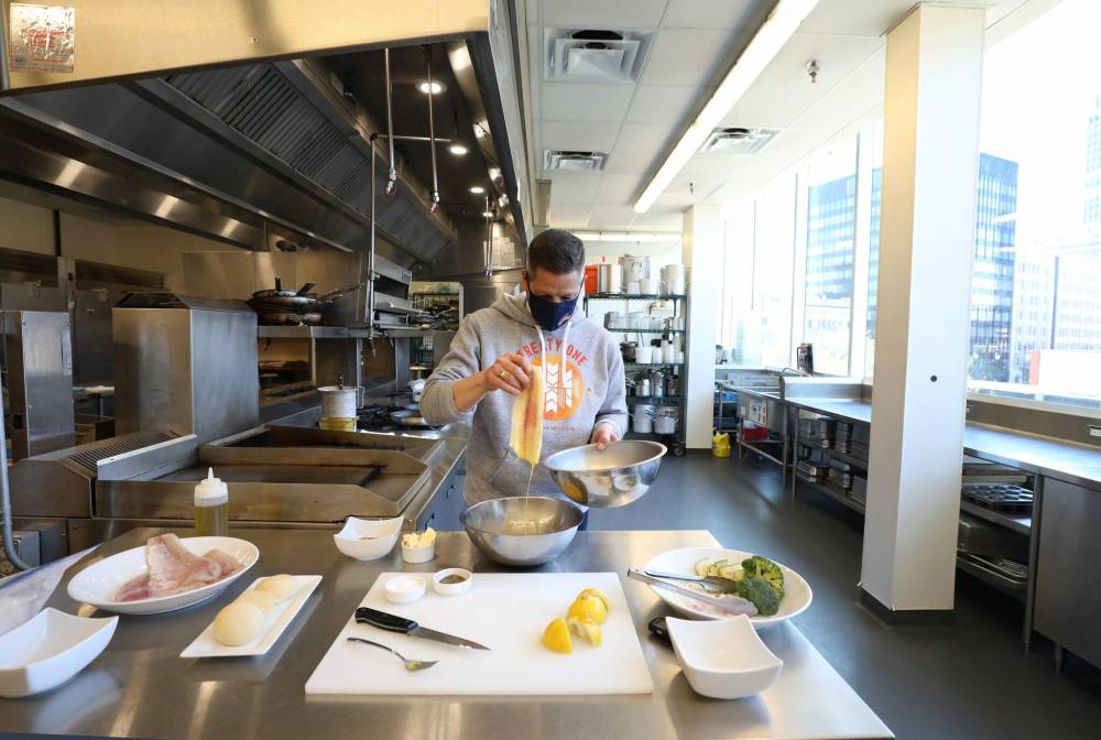 Brian Bowman’s mise en place for his meal of fried pickerel with roasted vegetables includes a ‘secret’ seasoning mix.