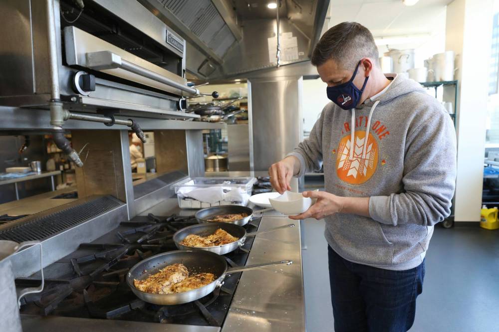 But enough of that. Bowman — masked up due to COVID protocols, although there’s no hiding his famous grin — is here today to cook, not chat about policy and goals and checkmarks.