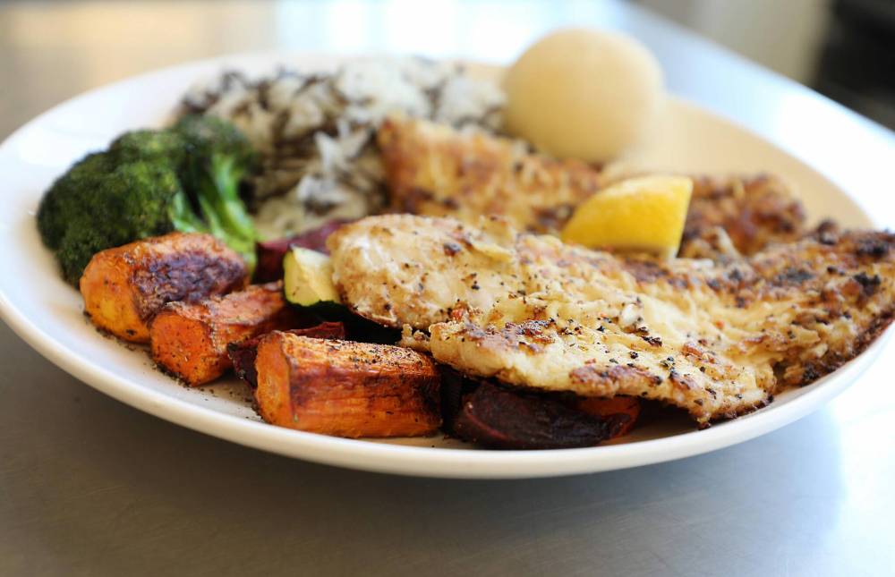 RUTH BONNEVILLE / WINNIPEG FREE PRESS Fried pickerel with rice and roasted vegetables is a dish that turned up often in Bowman’s family.