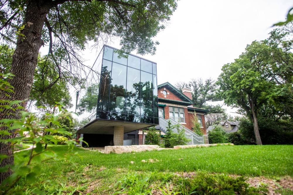 MIKAELA MACKENZIE / WINNIPEG FREE PRESS A fence separating the library’s yard from the river was taken down at the back of the newly renovated Cornish Library and a glass-and-steel-and-wood box was added.