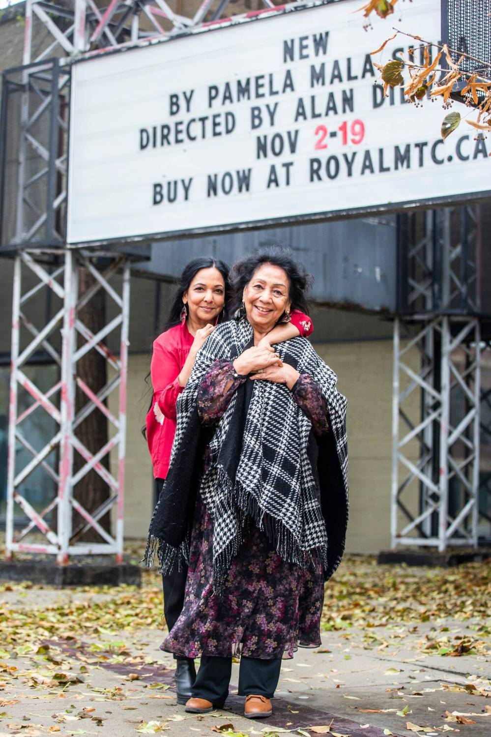MIKAELA MACKENZIE / WINNIPEG FREE PRESS Playwright Pamela Mala Sinha (left) and her mother, Rubena Sinha, outside the Tom Hendry Warehouse Theatre, where Pamela’s play, New, debuts on Saturday.
