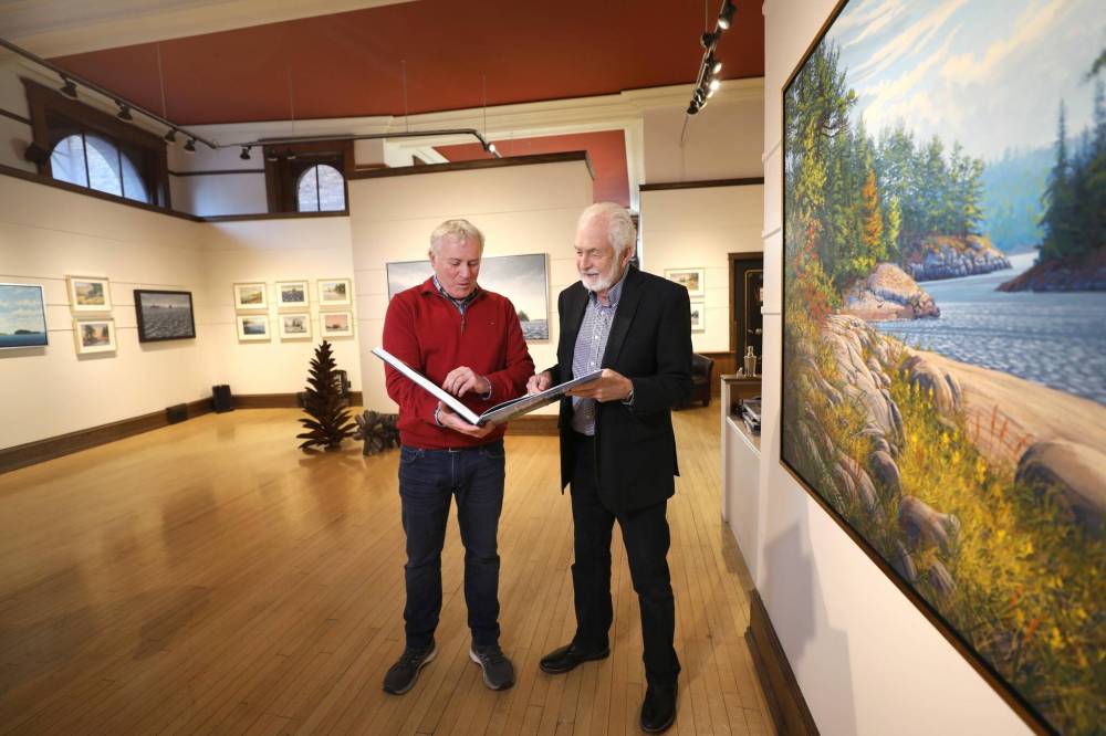 RUTH BONNEVILLE / WINNIPEG FREE PRESS Gallery owner Bill Mayberry, right, and artist Randolph Parker have spent years exploring Lake of the Woods, which inspired Parker to paint 230 works of the area.