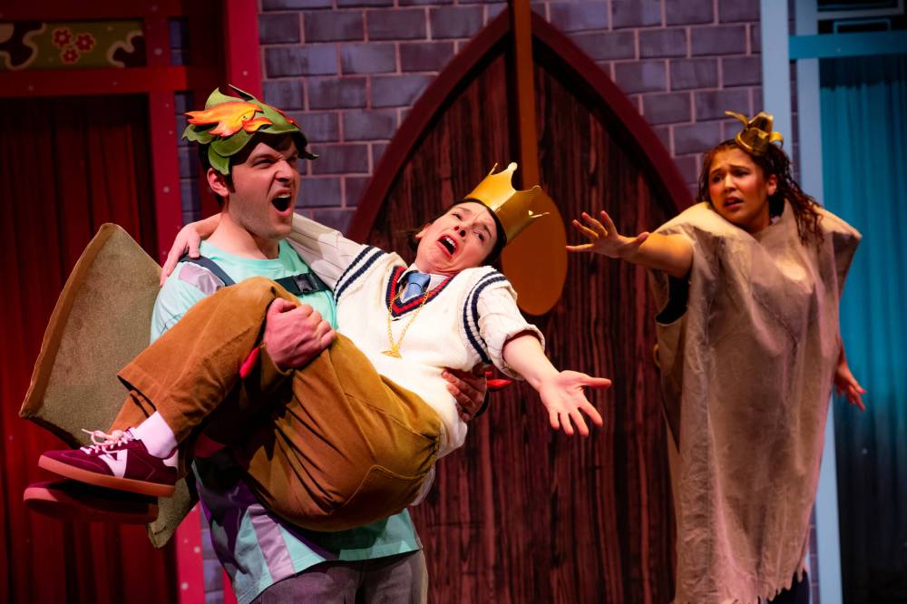 It’s a no-brainer that the show’s penultimate offering, The Paper Bag Princess, would create extra anticipatory buzz in the house. Recounted as a quasi-musical, its story of Princess Elizabeth (Joseph) who ultimately gives a comeuppance to the vainglorious Prince Ronald (a hilarious Collins, with the gender swapping adding further layers of intrigue) after tricking the Dragon (Krawchuk) has forever been stamped as a feminist tale of empowerment.