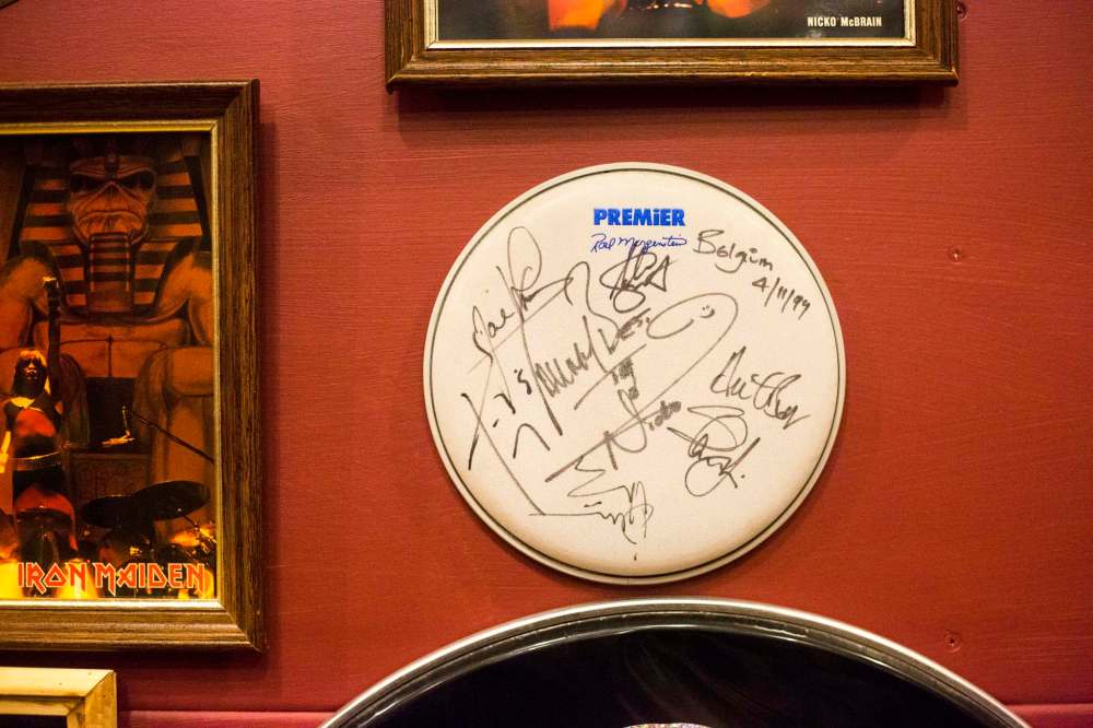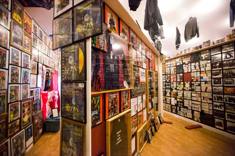 To put it mildly, he hasn’t slowed down much since then. His cache is currently housed in a custom-built, 3,000-square-foot gallery in a home he constructed from the ground up five years ago. Lining the walls and encased in a series of glass display units are close to 50,000 individual pieces. Every last one, from ticket stubs to drum skins to board games, is meticulously arranged in chronological order, beginning with grainy, black and white photographs of Iron Maiden circa 1975, the year bassist and primary songwriter Steve Harris founded the band in Leyton, England.