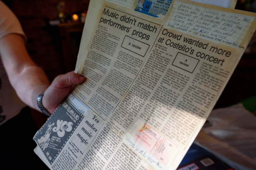 Flipping to Page 1 of Scrapbook No. 1, he shows off a review of that concert that begins with the headline, “Rock pioneers still a thrill.”