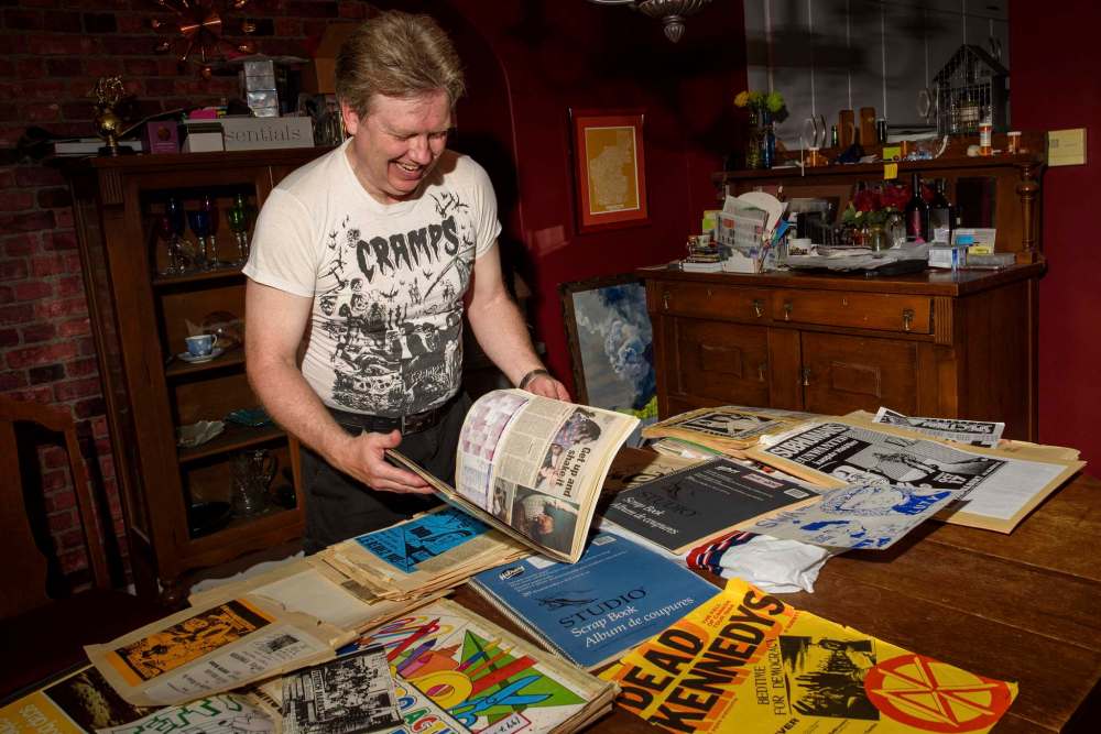 Is that what would possess a person to hang onto an advertisement for a 1980 university social headlined by Martha and the Muffins? Or a beer-stained sheet of foolscap reading, “NO STAGE DIVING ALLOWED” that he removed from a pillar inside the Royal Albert Arms Hotel following a set by American punk rockers the Dead Milkmen in the mid-’80s.