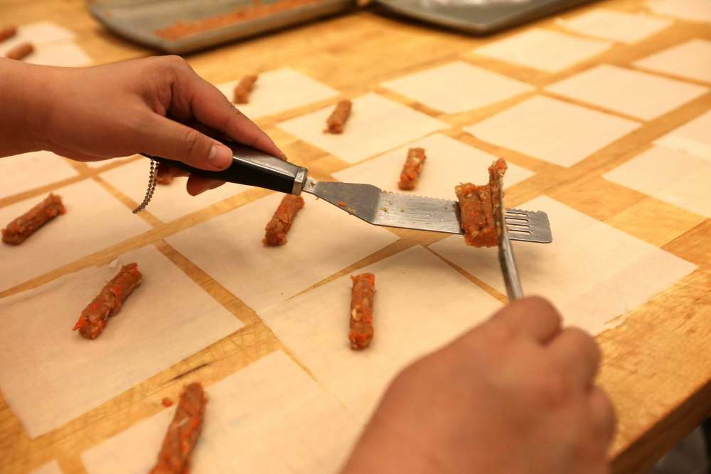 “When people come (to the commercial kitchen) to pick up their orders, sometimes we have samples of things like apple pie (spring rolls) and they’re like, ‘What?’ But throw a little cinnamon sugar on top after taking them out of the deep fryer and you’d think you were eating those mini-donuts, with an apple filling.”
