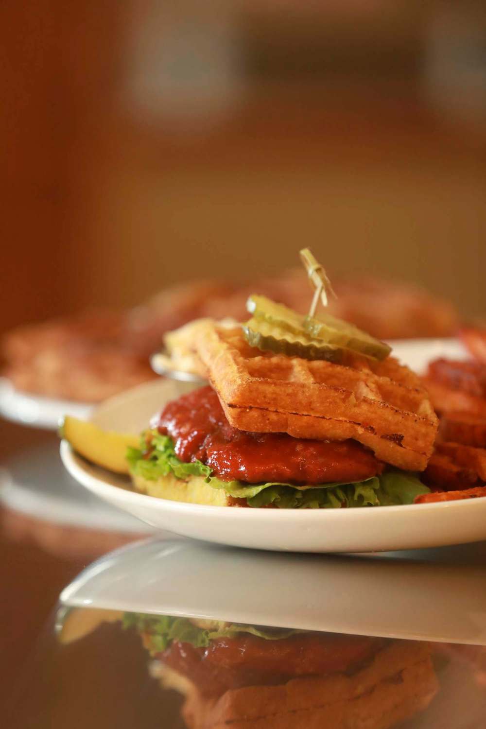 The Original Pancake House still features a few of its signature dishes like the Giant Apple Pancake, but new to the menu is their spicy chicken waffle sandwich.