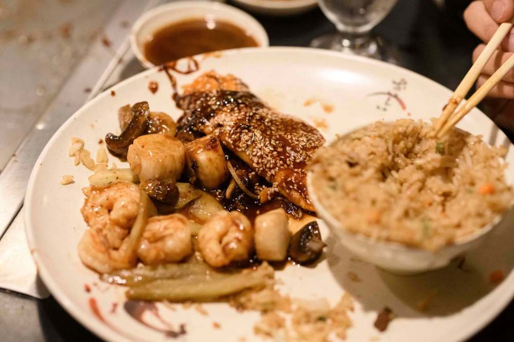 Certainly, the food is fresh and hot — after all, it’s being cooked right in front of you. The seasoning, however, which relies heavily on varying combos of soy sauce, teriyaki sauce, sake and garlic salt for everything from appetizers to mains to veg, can get overpowering — and especially overly salty.