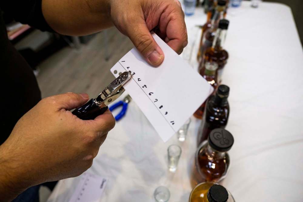 Next, after reminding everybody that there won’t be a meet-up in December due to Christmas falling on a Wednesday this year — “Humbug to that,” murmurs somebody in the back — Kaufmann reviews how tonight’s proceedings will unfold. Every 30 minutes or so, members can approach the head table and choose the libation they’d like to taste next. They are welcome to try six of the 10 which, on this occasion, include a Knob Creek 120 Proof bourbon, a 10-year-old Ledaig and a Shinobu Mizunara Oak.