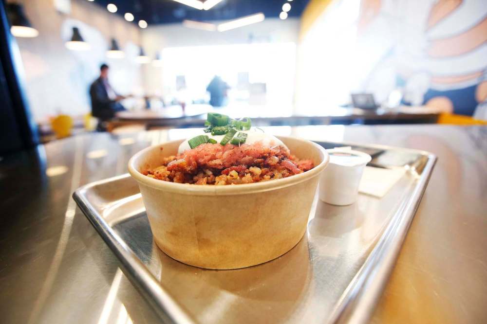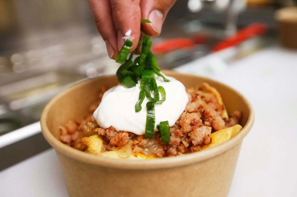 The restaurant serves both boiled and fried potato-and-onion stuffed perogies that are served under various cheeses, vegetables and ample amounts of proteins, including smoked beef brisket, pulled pork and butter chicken.