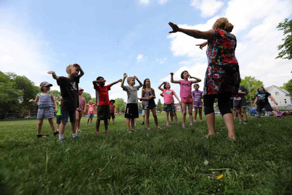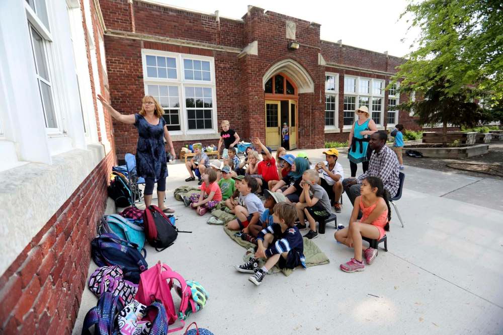 And so, on June 5, with tarps, water bottles, sunscreen and library books packed into our classroom wagons, every child in Wolseley School headed outside to school for the day. Each morning, the entire school meets in the centre of the schoolyard for the singing of O Canada and for announcements — including a seven-year-old’s reminder to “wear sunscreen and have fun!”