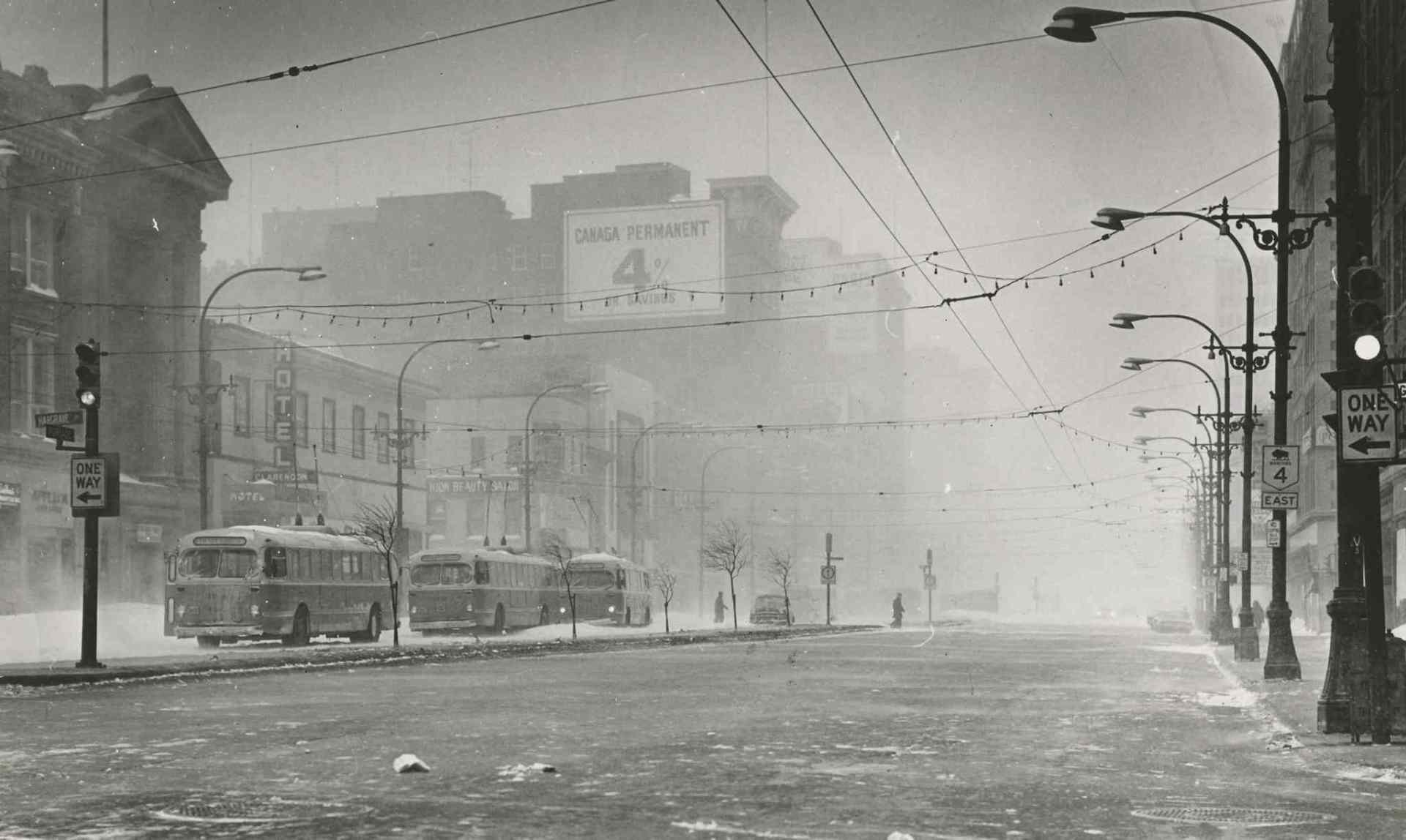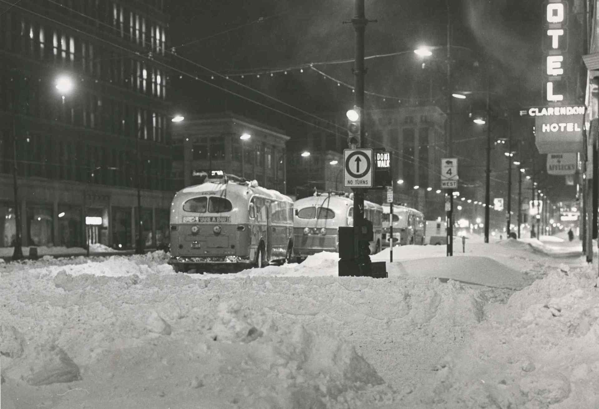 The storm forced 1,600 people to spend the night inside the Bay and Eaton’s, while hundreds more were trapped in buses stuck on snow-covered streets. Two men died of heart attacks trying to walk home.