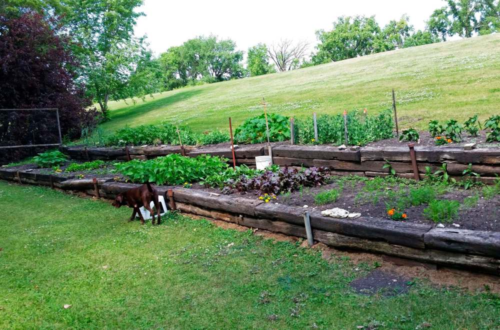 Lewis gets a little help from her long-time friend, Earl Stafford, who drives the tractor and each fall gathers up the huge amount of leaves that pile up on the ground and are then stored to make compost. Stafford is the former music director of the Royal Winnipeg Ballet. Last fall Stafford built Lewis an enclosed garden consisting of nine wooden raised beds. The fence that surrounds it is nearly two meters high. Lewis hopes this will be enough to deter the numerous deer that now visit her property.